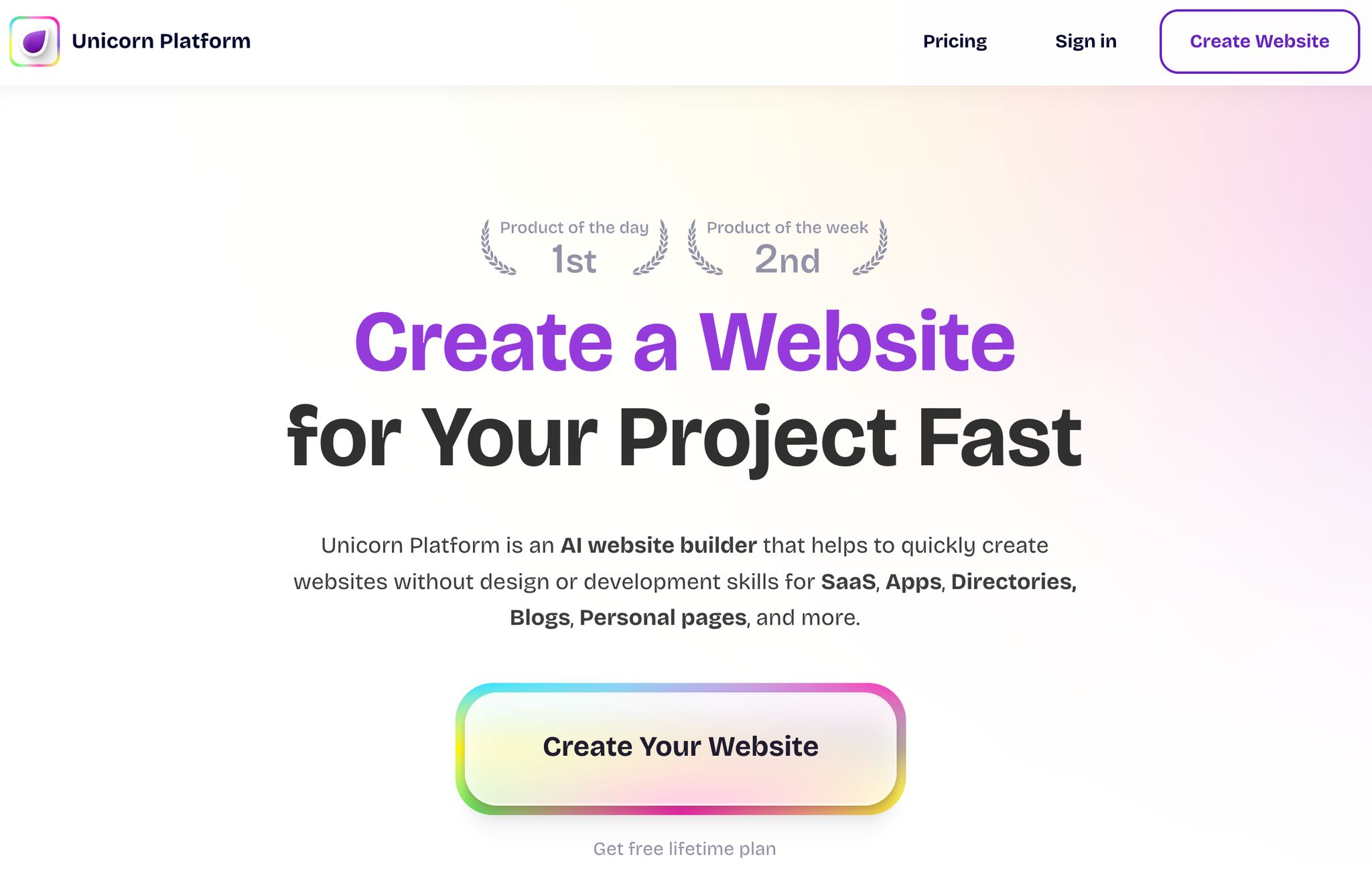 | Unicorn Platform | Landing page builder for startups and SaaS companies | Fast load times, clean code, mobile-first design, built-in SEO tools | Limited to simple sites, fewer third-party integrations, unsuitable for complex websites | Plans start at $9.00/month |
