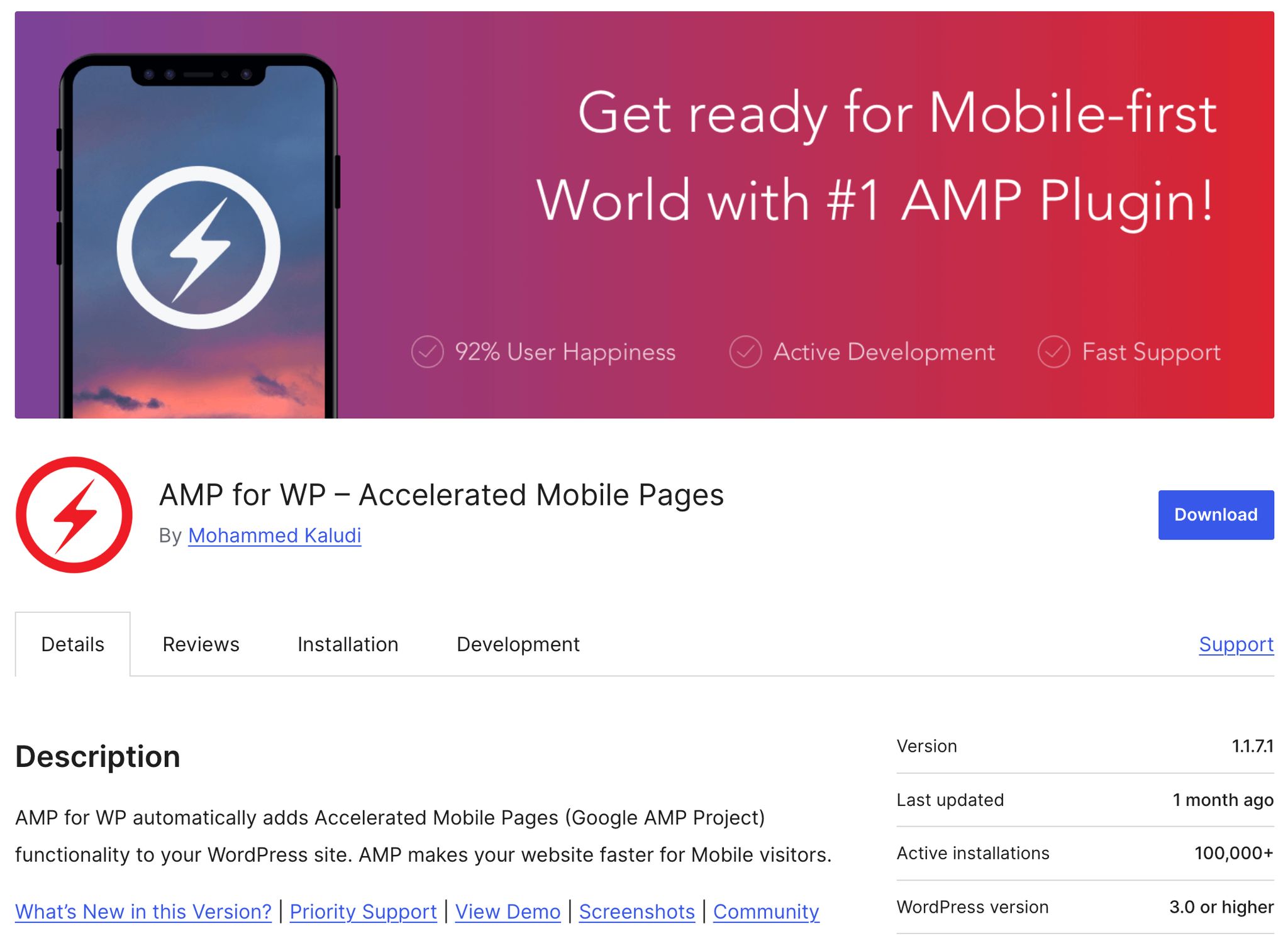 AMP for WP takes the core features of AMP and adds a layer of advanced customization and design options. With over 100,000 installations, it’s a popular choice for improving mobile optimization and page design. Let’s dive into how it enhances mobile performance.