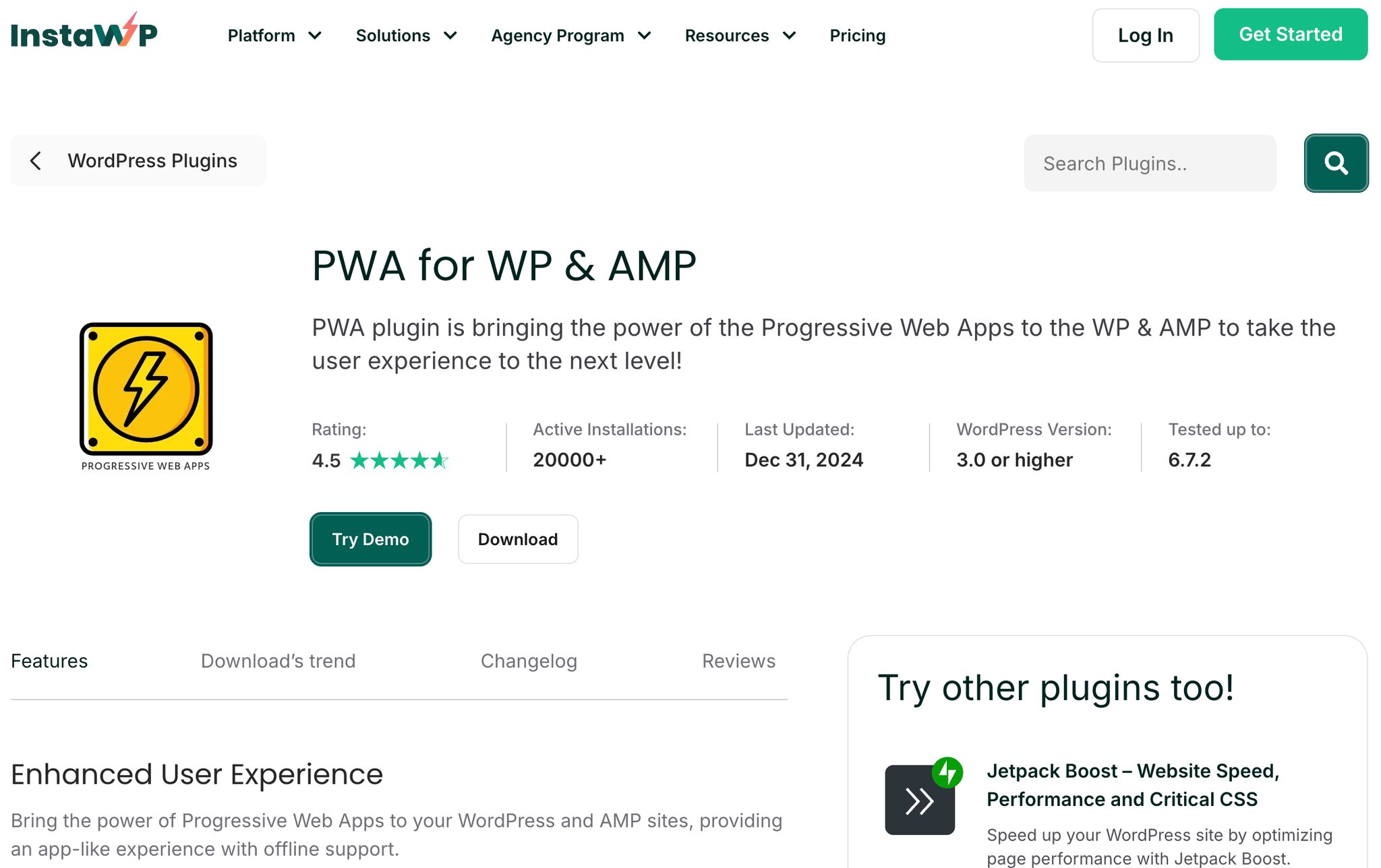 PWA for WP & AMP combines the power of Progressive Web Apps (PWA) and Accelerated Mobile Pages (AMP) to create a dynamic mobile experience. This plugin transforms your WordPress site into an app-like platform while leveraging AMP's speed improvements - perfect for entrepreneurs who want top-notch mobile performance without the hassle of building a separate app.