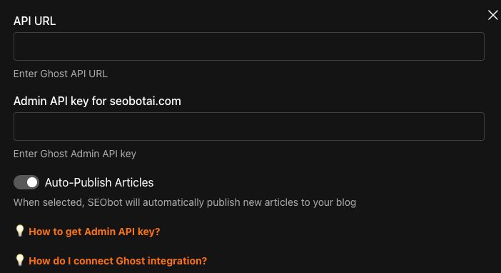 Navigate to Menu → Connect my Blog → Ghost in the SEObot application: