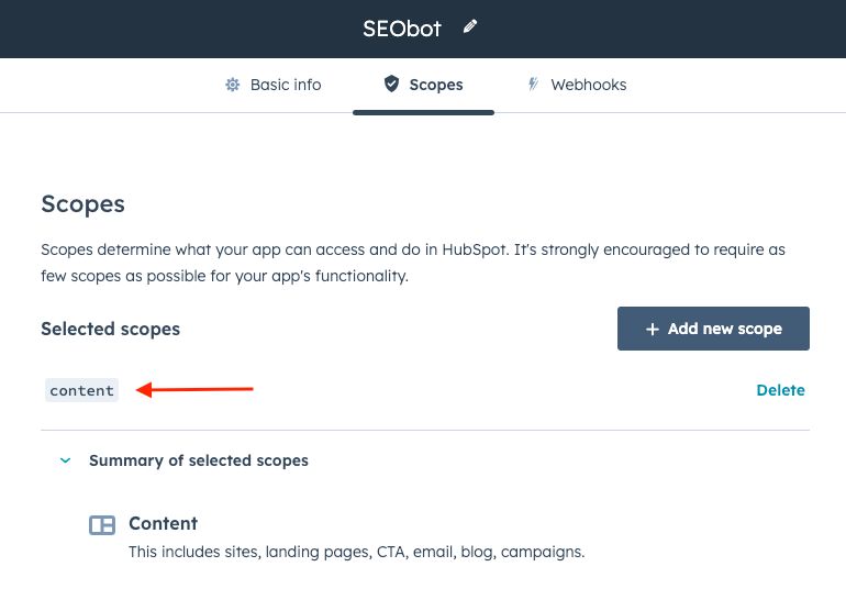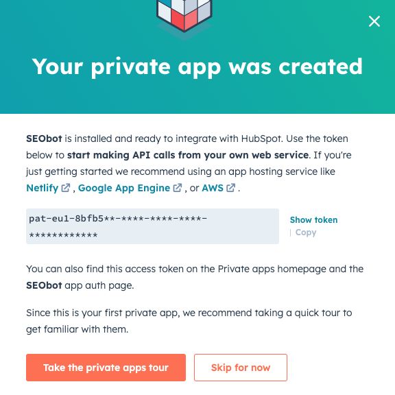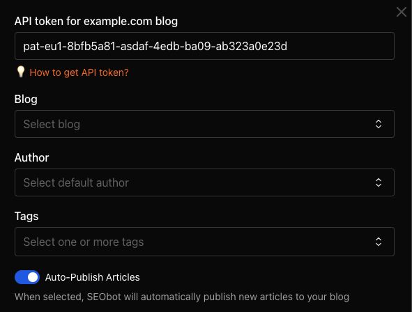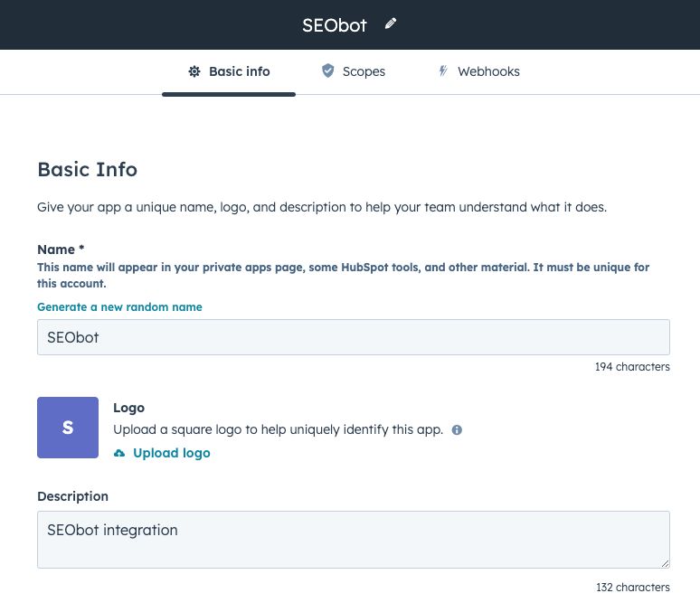 In SEObot, open Menu -> Connect my Blog -> HubSpot and fill out the connection form: