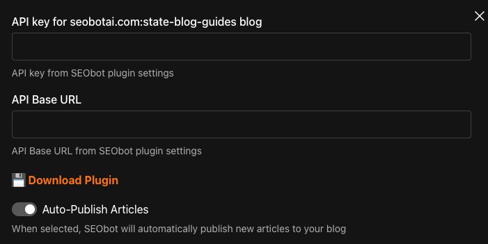 There are three options to connect SEObot to your blog in the Menu → Connect my Blog: